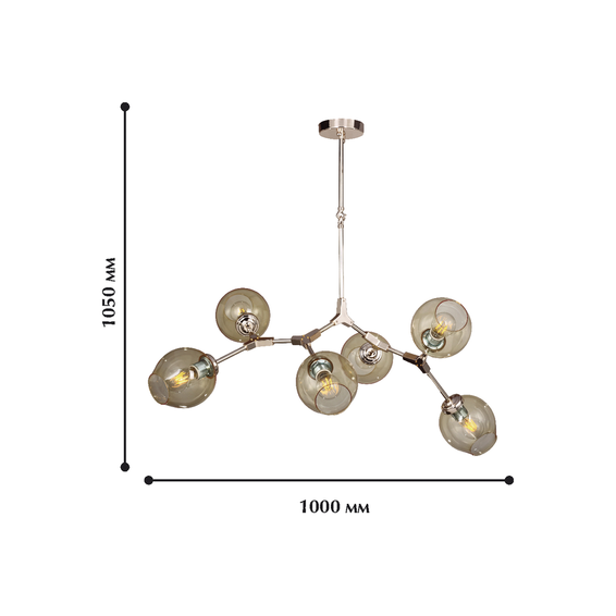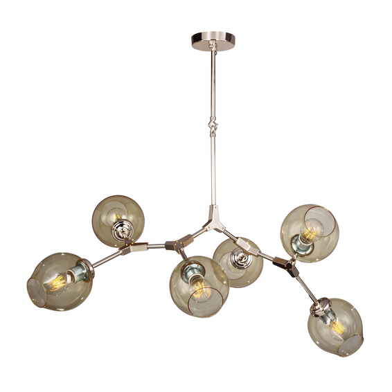 Корпус светильника из металла светло-золотого цвета, прозрачные стеклянные плафоны янтарного оттенка.Доступен в черном цвете каркаса код-1742-6P,и в медном цвете каркаса код- код-1743-6P.