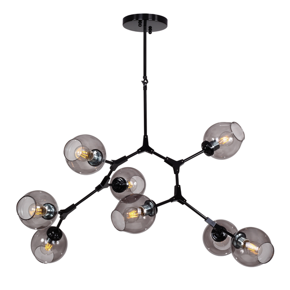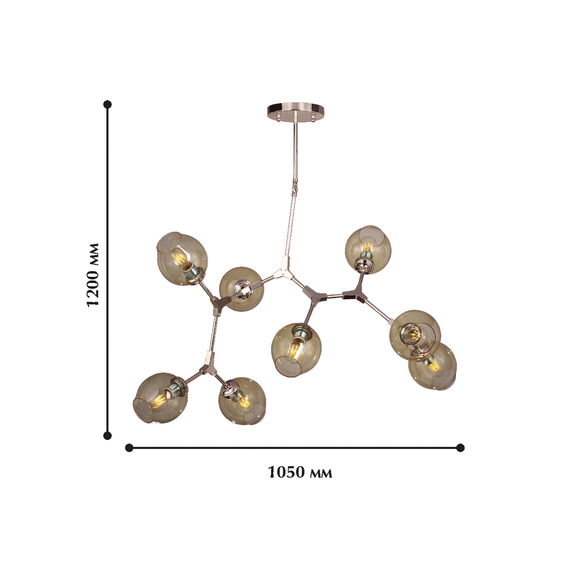 Корпус светильника из металла светло-золотого цвета, прозрачные стеклянные плафоны янтарного оттенка.Доступен в черном цвете каркаса код-1742-8P,и в медном цвете каркаса код-1743-8P.