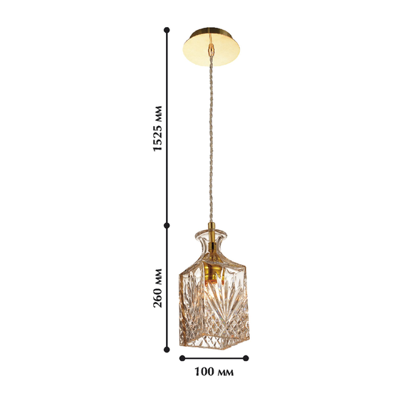 Плафон из прозрачного декоративного стекла, металл золотого цвета. Доступен со стеклом коньячного цвета - BOTTLE 1856-1P.