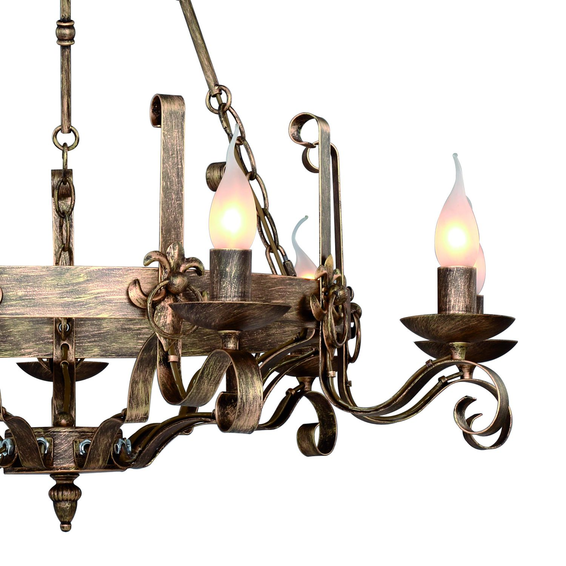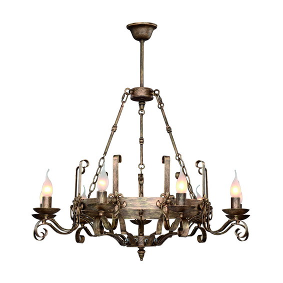 Корпус светильника из металла,представленный в коричневом цвете с золотой патиной.Можно использовать с абажурами.