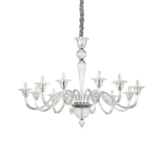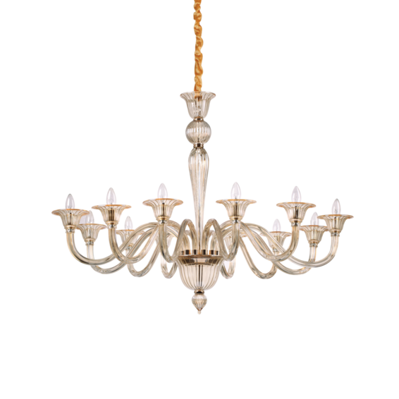 Люстра из дутого стекла ручной работы с арматурой из металла и цепь скрыта бархатной тканью.