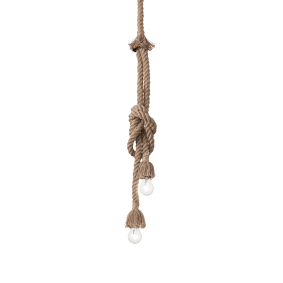 Металлическая арматура и электрические провода полностью покрыты конопляной веревкой натурального цвета.