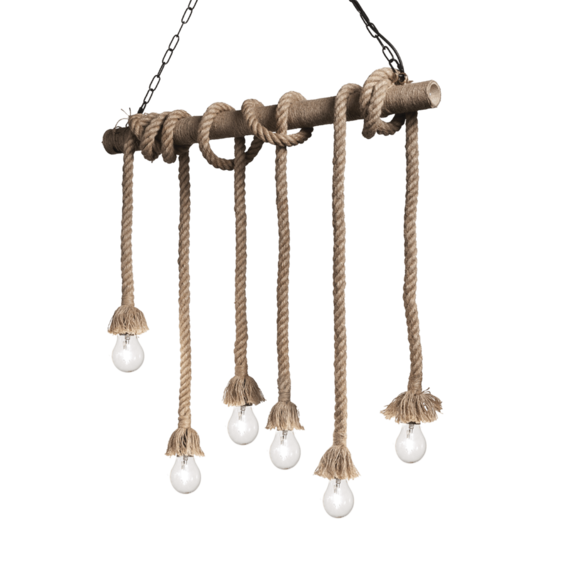 Металлическая арматура и электрические провода полностью покрыты конопляной веревкой натурального цвета.