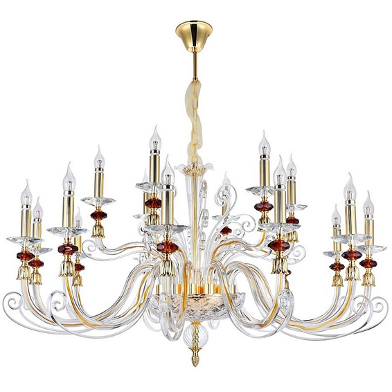 Арматура светильника сделана из металла,окрашена в золото,корпус из прозрачного стекла.Декоративные стеклянные элементы коньячного цвета.