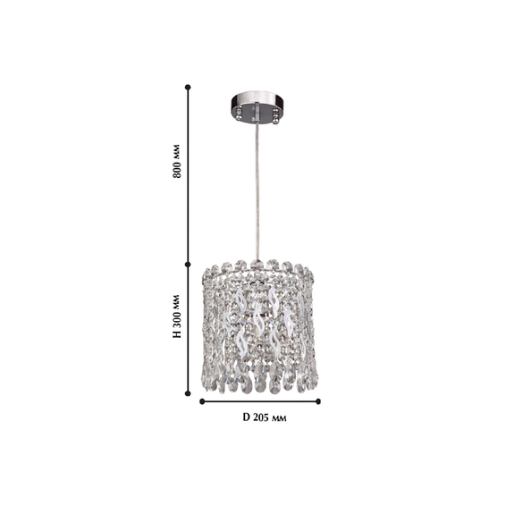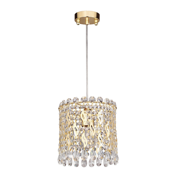 Корпус светильника из металла, покрытый золотой гальваникой,подвески из прозрачного хрусталя высшего качества.Доступен в хроме код- 2049-1P.