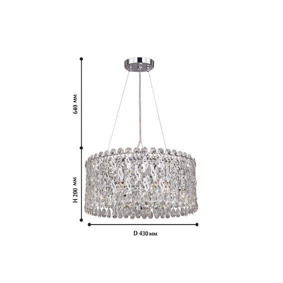 Корпус светильника из металла, покрытый золотой гальваникой,подвески из прозрачного хрусталя высшего качества.Доступен в хроме код- 2049-6P.
