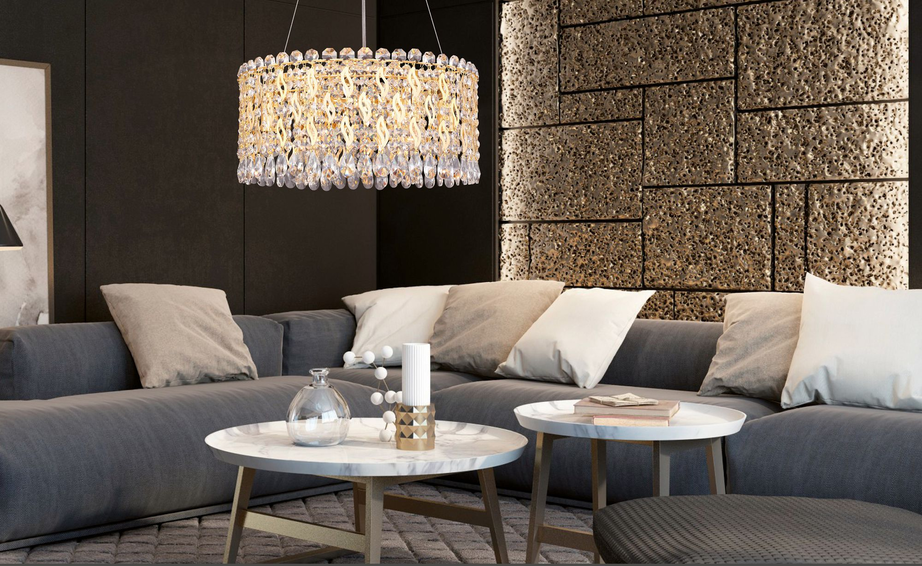 Корпус светильника из металла, покрытый золотой гальваникой,подвески из прозрачного хрусталя высшего качества.