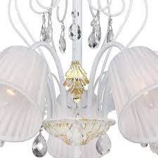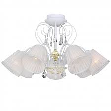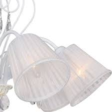 Арматура из металла,окрашена в белый цвет с золочением декоративных элементов. Светильники декорированы тканевыми абажурами из белой органзы.