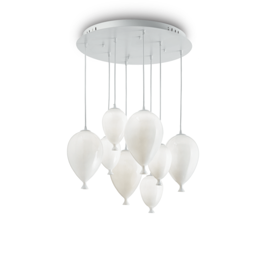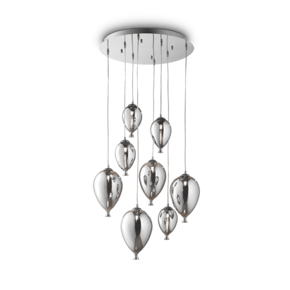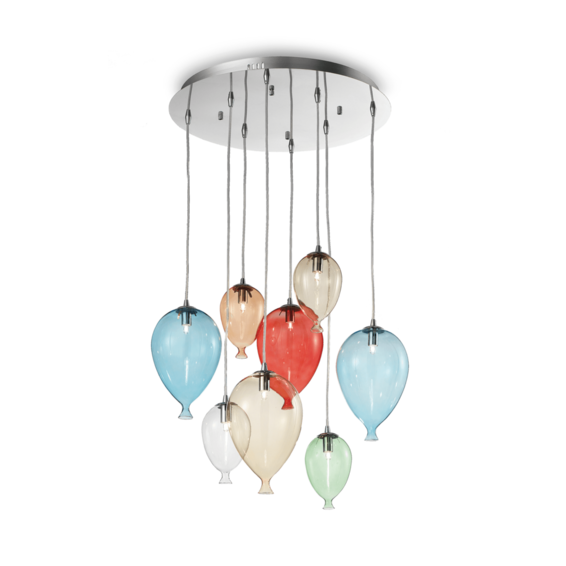 Арматура из металла с рассеивателями из дутого стекла ручной работы. Доступен с хромированной арматурой и разноцветными плафонами, хромированными плафонами -CLOWN SP8 код 100913 или хромированной арматурой и белыми плафонами -CLOWN SP8 код 100883
