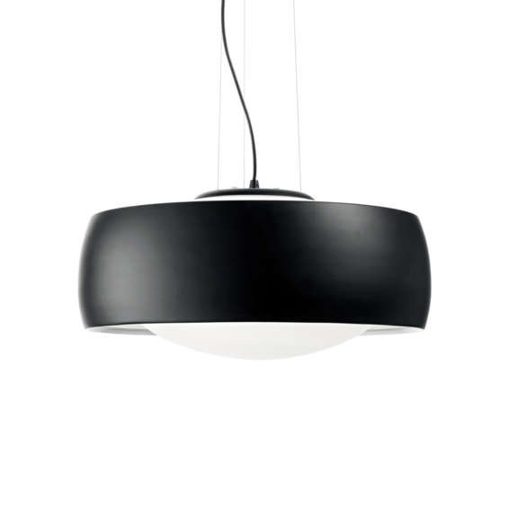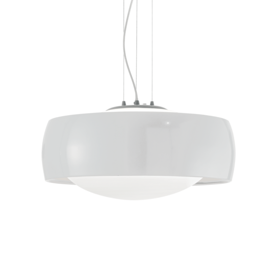 Потолочная чаша и корпус света из металла матовой краски. Стальные тросики регулируются по длине. Рассеиватель из дутого белого матового стекла.