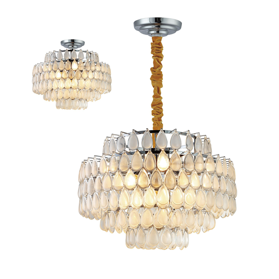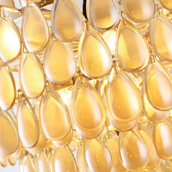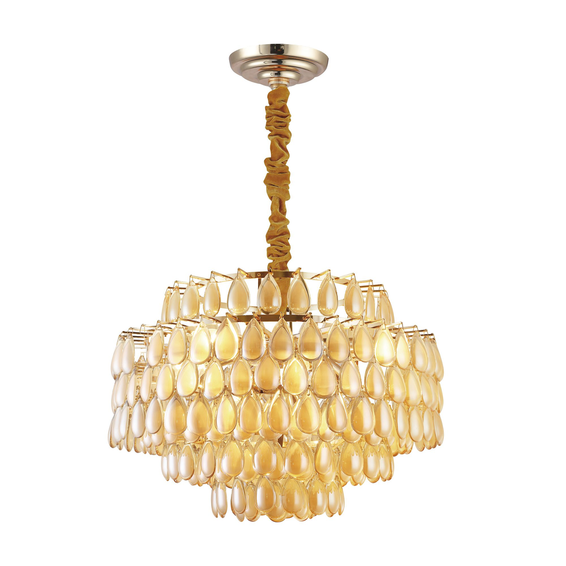 Каркас изготовлен из металла, покрытый золотой гальваникой, стеклянные подвески коньячного цвета. Доступен в хроме с белыми подвесками - COUNTRY 2096-12P .
