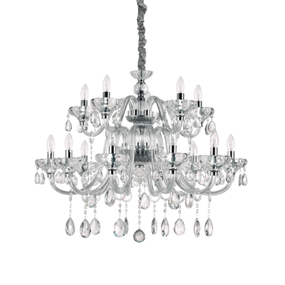 Арматура и детали из металла хромированного покрытия. Рожки из дутого стекла. Подвески и декоративные элементы из прозрачного стекла и хрусталя.