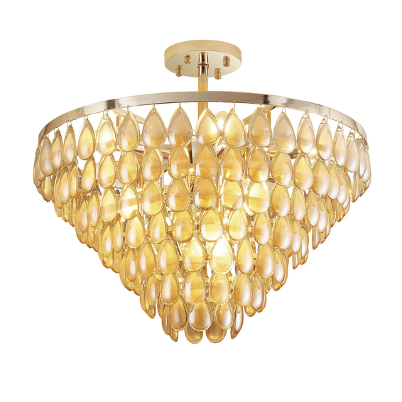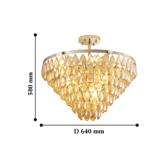 Корпус светильника из металла,покрытый золотой гальваникой. Стеклянные подвески коньячного цвета.