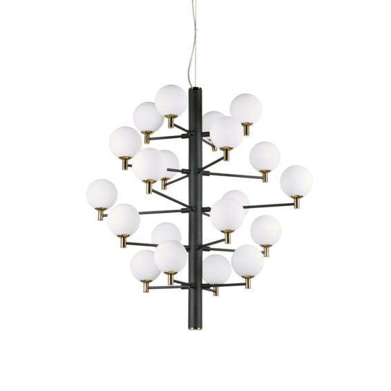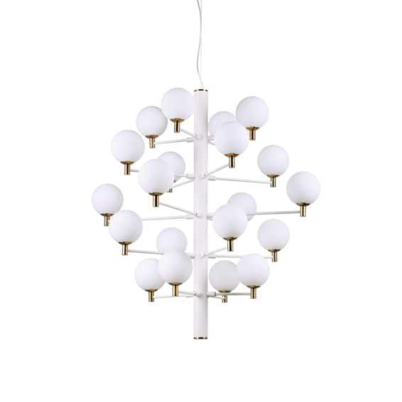 Арматура из металла матовой краски с деталями из латуни. Рассеиватели из облицованного дутого матового белого стекла.