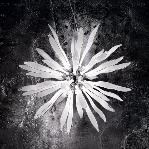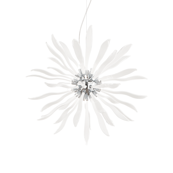 Шарообразная арматура и детали из металла с хромовым покрытием. Декоративные элементы из цветного стекла ручной работы.