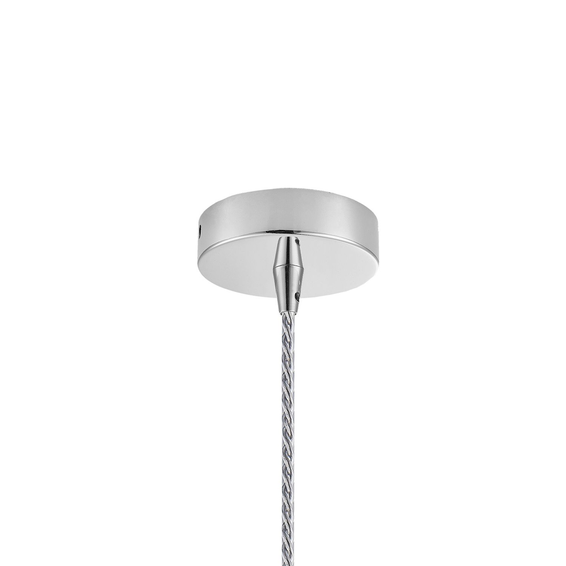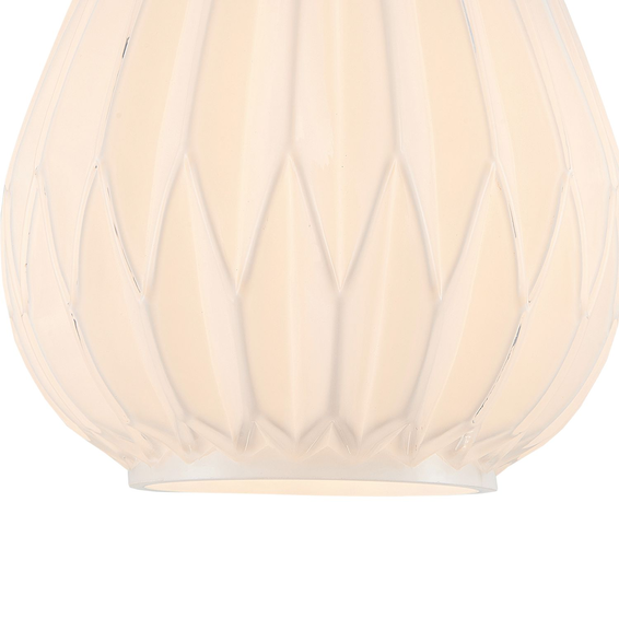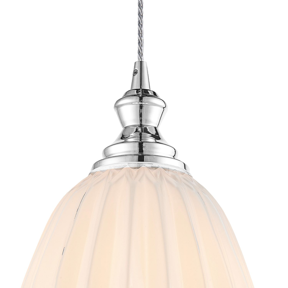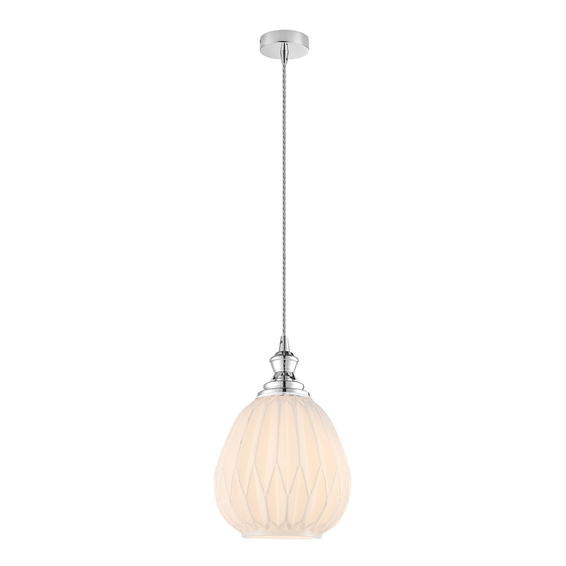 Выдувное узорное стекло молочно-белого цвета, каркас из металла цвета хром.