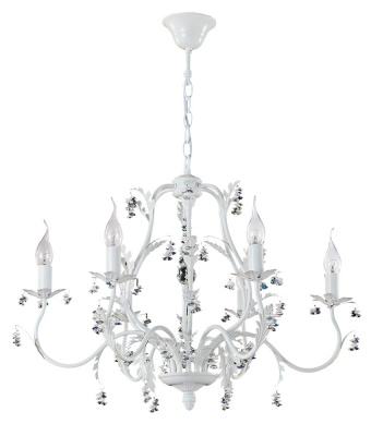 Каркас изготовлен из металла, окрашенного в белый цвет, хрустальные подвески прозрачного цвета и цвета хамелеон.