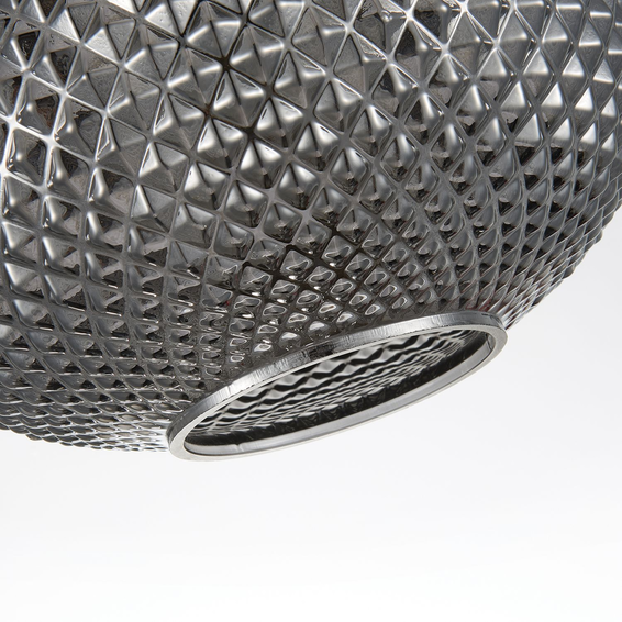 Выдувное стекло зеркально-серого цвета в форме узорного купола. Каркас из металла, с хромированным покрытием.Доступен в коньячном цвете код- 2180-1P .