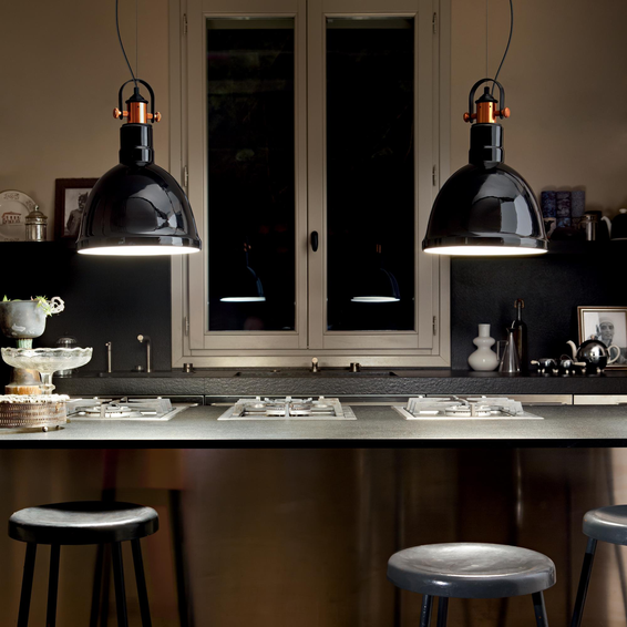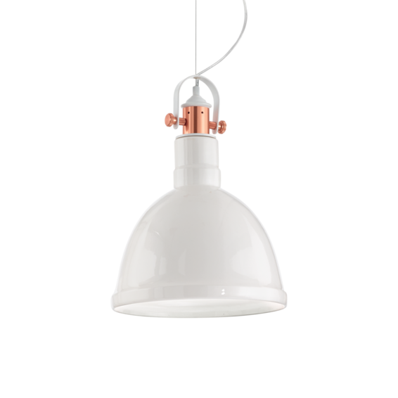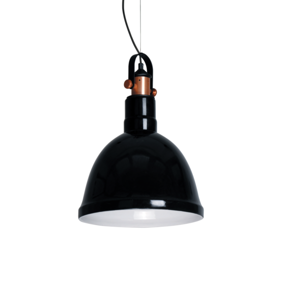 Потолочная чаша и рассеиватель из глянцевой керамики. Центральная арматура из металла почищенной медовой краски и чёрными матовыми деталями.