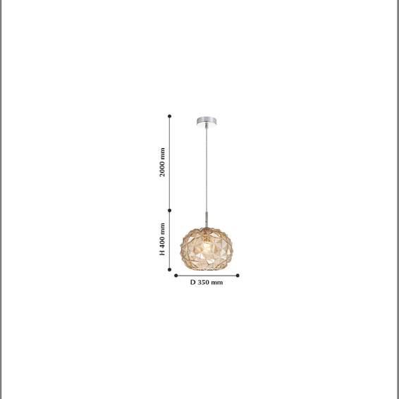 Выдувное стекло коньячного цвета с узором из множества треугольников, каркас из металла цвета хром.