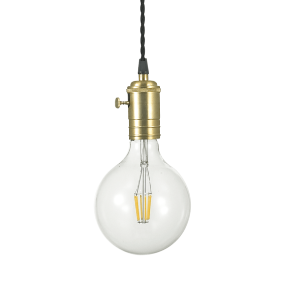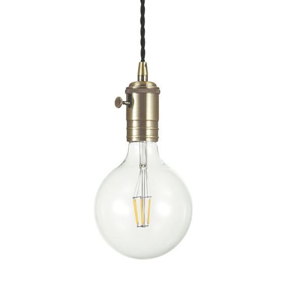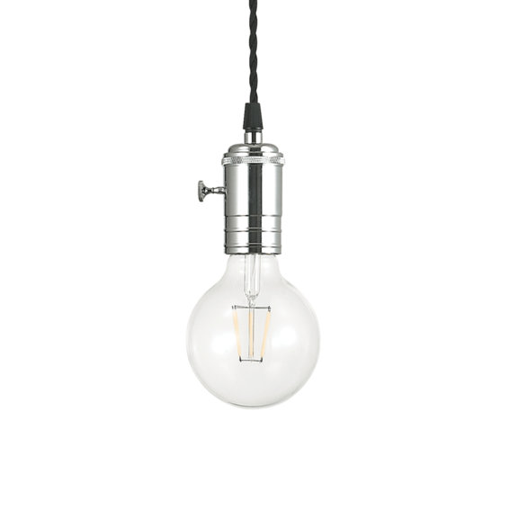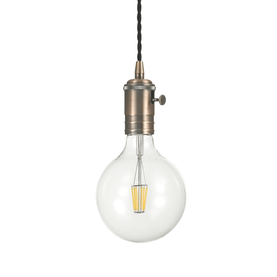 Потолочная чаша и покрывающие патроны колбы из металла с разными покрытиями. Провод из чёрной ткани. Выключатель встроенный в патрон.