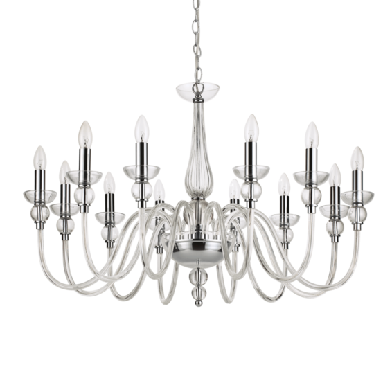 Люстра из прозрачного или белого дутого стекла ручной работы. Арматура и детали из хромированного металла.