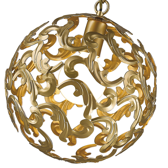 Арматура светильника сделанный из металла и окрашенный в золотой цвет. Желательно использование декоративной лампы матового цвета и большого диаметра.