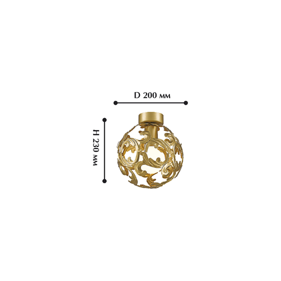 Арматура светильника сделанный из металла и окрашенный в золотой цвет. Желательно использование декоративной лампы матого цвета и большого диаметра.