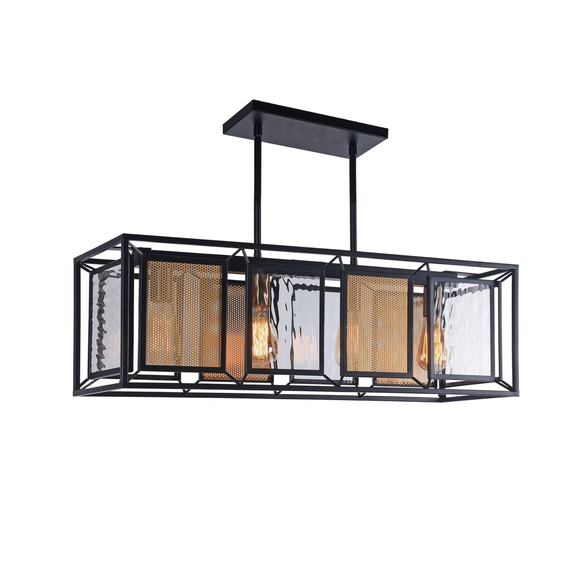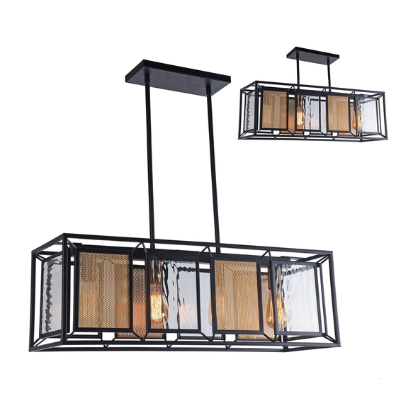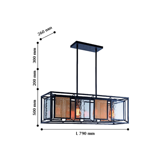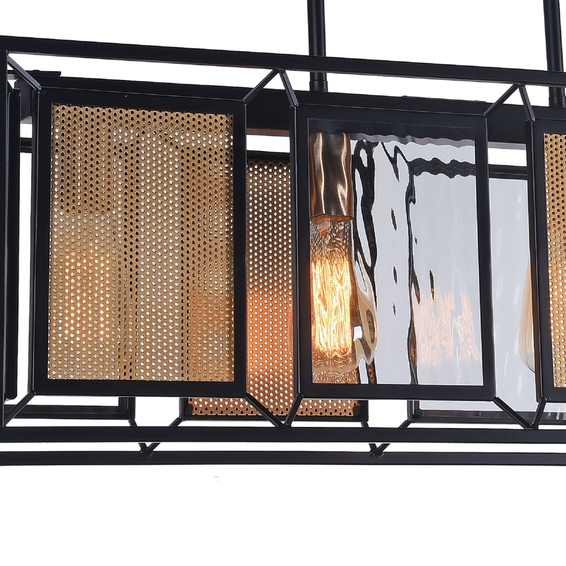 Каркас изготовлен из металла, окрашенного в черный цвет с декоративной решеткой золотого цвета, стекло с эффектом струящейся воды. Длина провода регулируемая.