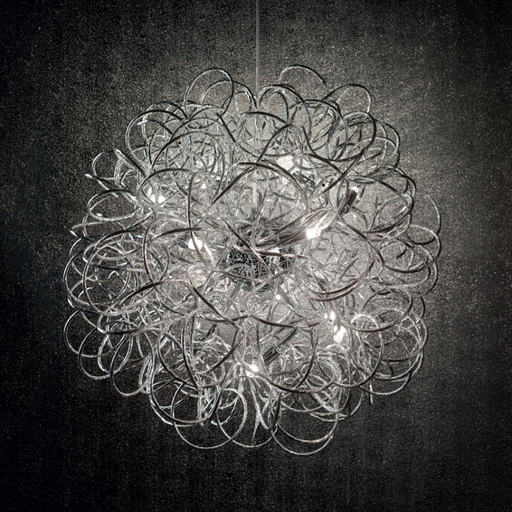Трубчатая арматура из серебристого алюминия ручной работы. Электрический провод регулируемый по длине.