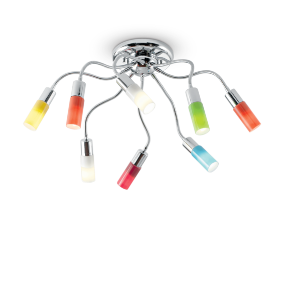 Основа и гибкие рожки из металла с хромовым покрытием, регулируемые на свое усмотрение. Рассеиватель из цветного матового стекла.