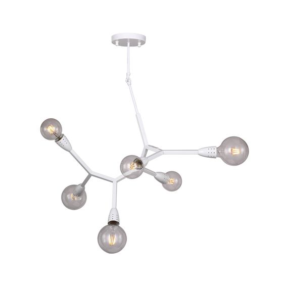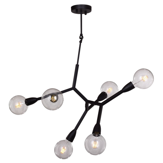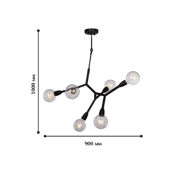 Каркас и крепежные детали из металла черного цвета, лучше использовать лампы крупного размера шарообразной формы.Доступен в белом цвете код- 1755-6P.