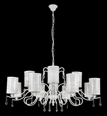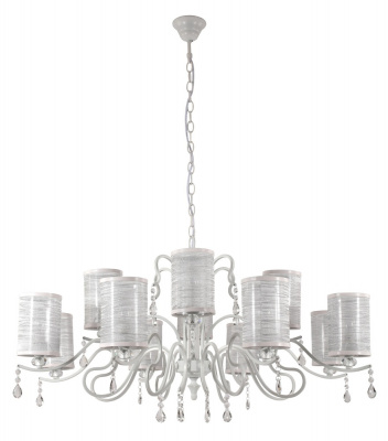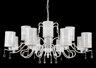 Каркас изготовлен из металла, окрашенного в белый цвет. Абажуры белого прозрачного цвета из текстиля и пластика, хрустальные подвески прозрачные.