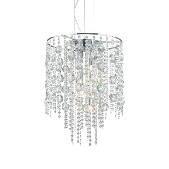 Подвески из хрусталя с фацетом. Подвесы снабжены стальными тросиками регулируемыми по длине с помощью автоматического устройства.