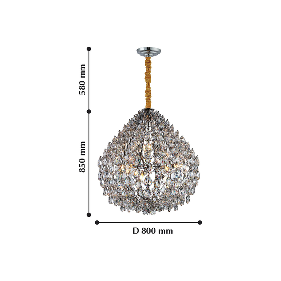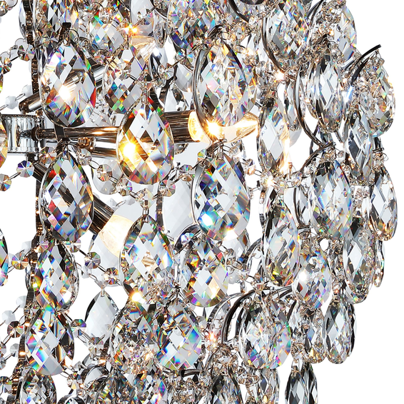 Каркас выполнен из металла, окрашенного в хромовый цвет, хрустальные подвески высшего качества.