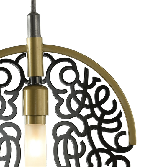 Каркас изготовлен из металла, окрашенного в сочетании черного цвета, хрома и окрашенного золота. Стеклянный плафон из матового стекла. Доступен в сочетании белого цвета и золота - - FABIA 2303-1Р.