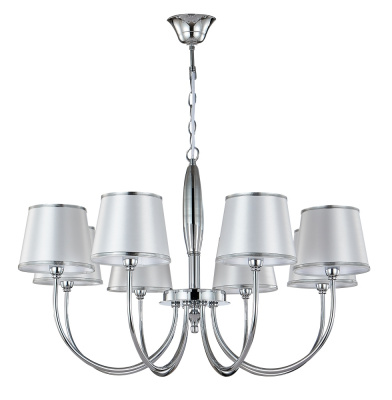 Каркас изготовлен из металла хромированного цвета. Абажуры серого цвета из текстиля и пластика.