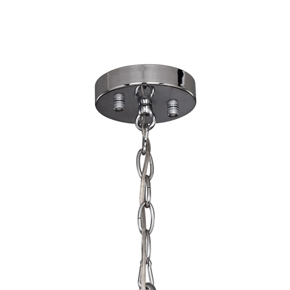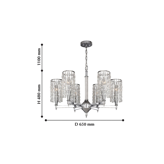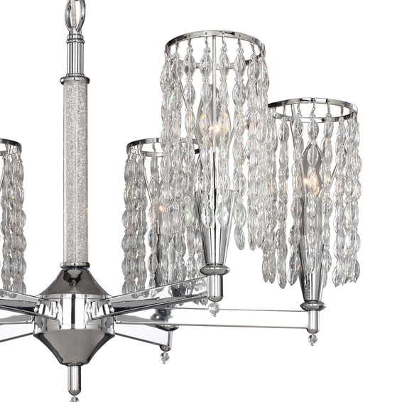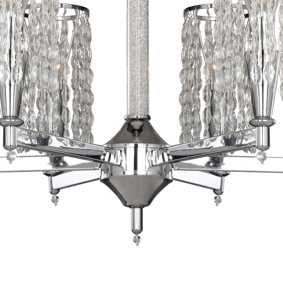 Каркас изготовлен из металла в хромовом цвете, центральный стеклянный цилиндр декорирован внутри кристаллами, подвески из хрусталя оригинальной формы.