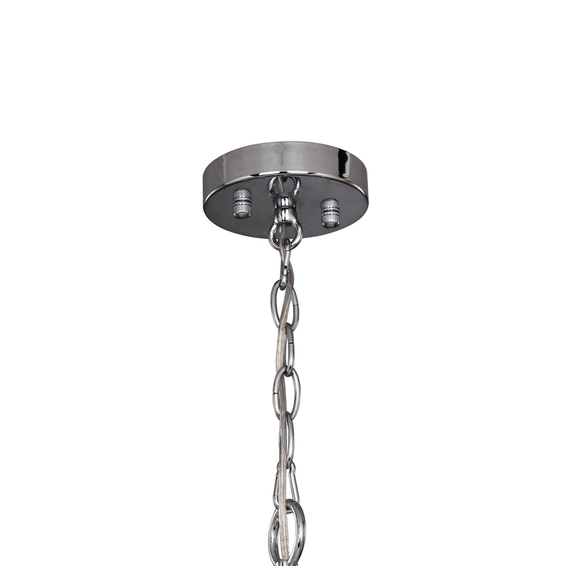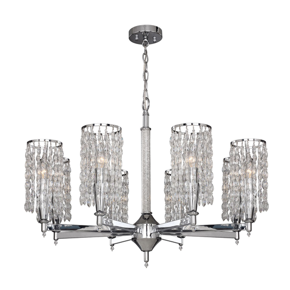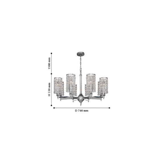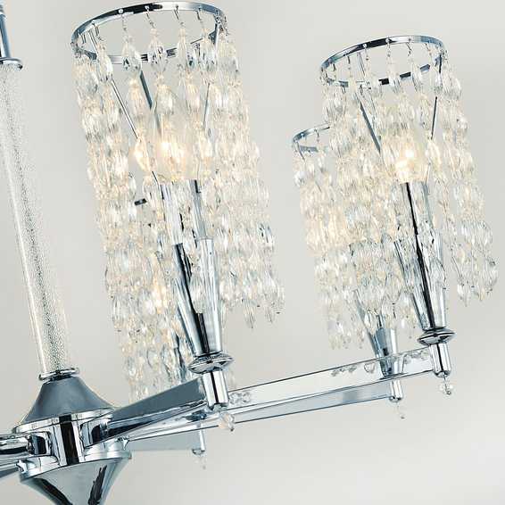 Каркас изготовлен из металла в хромовом цвете, центральный стеклянный цилиндр декорирован внутри кристаллами, подвески из хрусталя оригинальной формы.