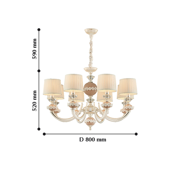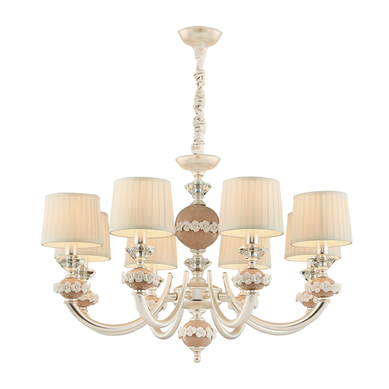Каркас изготовлен из металла серебряного цвета, декоративные элементы из керамики бежевого цвета с белыми керамическими цветами.