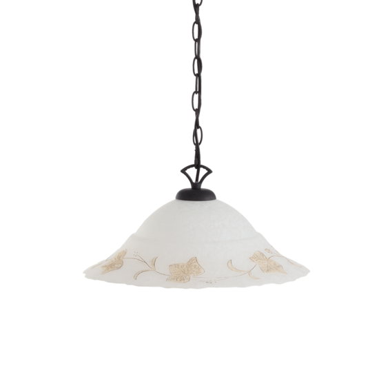 Арматура из металла черного цвета, выкрашена вручную. Рассеиватель из вытянутого стекла, рельефы которого окрашены также вручную.