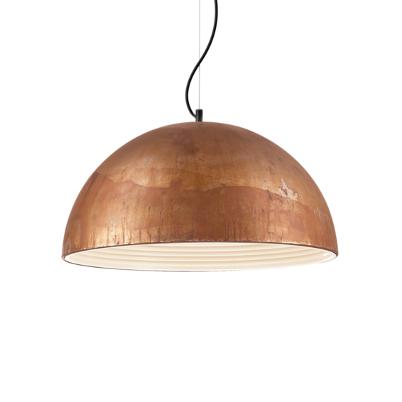 Потолочная чаша и рассеиватель из металла украшеного под окисленный вид. Внутренняя парабола выгнута и окрашена в белый. Провод из чёрной ткани.