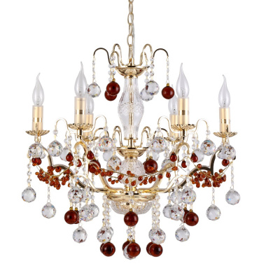 Каркас изготовлен из металла, окрашенного в цвет золота. Хрустальные подвески прозрачного и темно-янтарного цвета.
