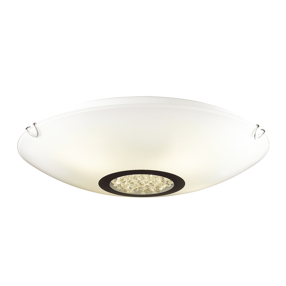 Каркас светильника из металла ,покрашенный в белый цвет. Плафон из стекла из стекла,декоративные элементы из хрусталя.