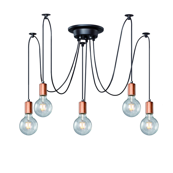 Серия потолочных светильников FUTURO с латунными декоративными цоколями. Все провода оснащены мини креплениями к потолку.