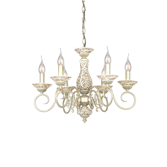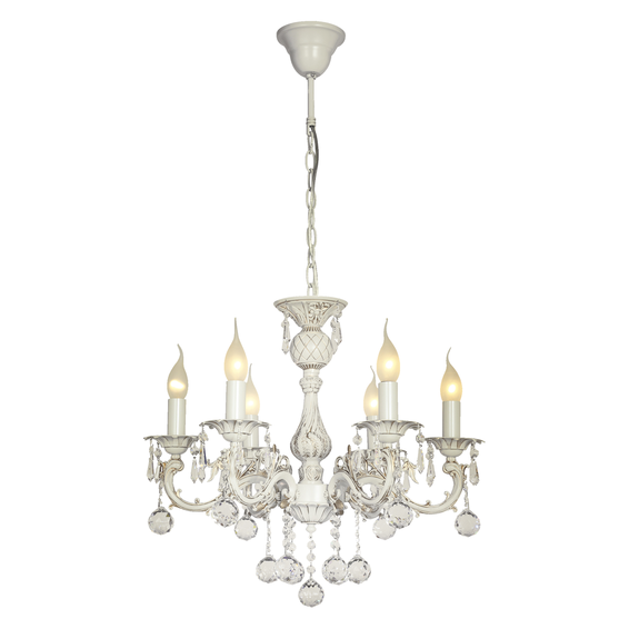 Арматура и крепежные детали сделаны из металла,покрытый гипсом ,окрашенного антично белый цвет.Подвески из прозрачного хрусталя.Доступен также в белом с золочением цвете код-1308-6P.