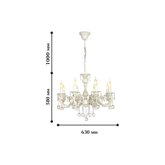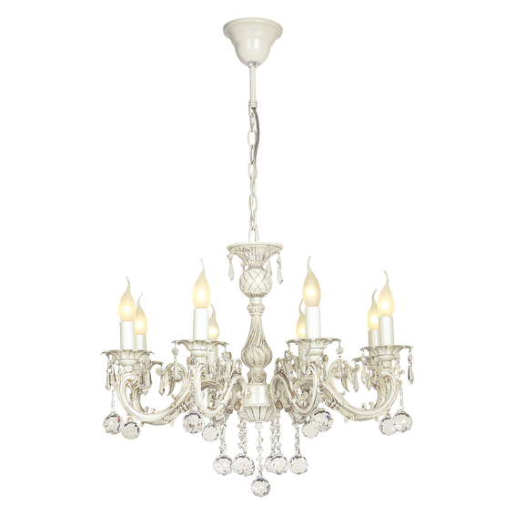 Корпус и крепежные детали сделаны из металла,покрашены в белый цвет с золочением.Подвески из прозрачного хрусталя.
