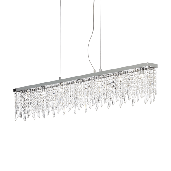 Арматура из хромированного металла. Подвески из восьмиугольного и пирамидного хрусталя с фацетом.
