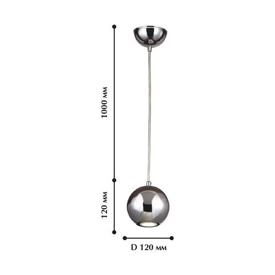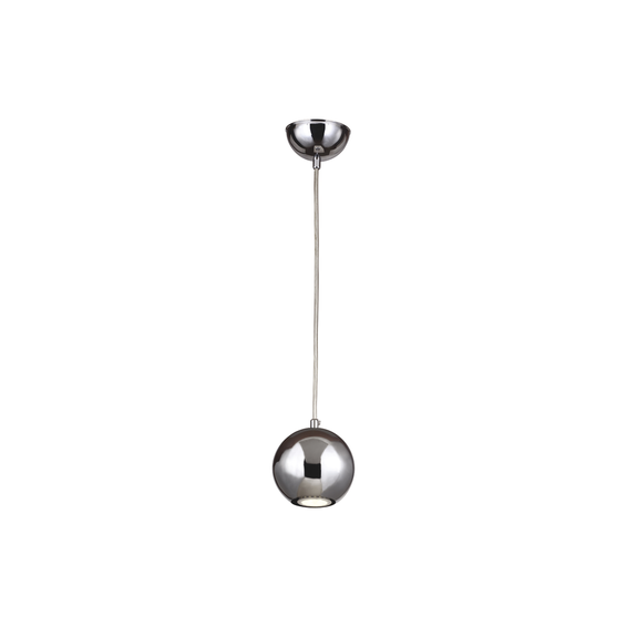 Небольшие плафоны-шарики, выполненные из хромированного металла, располагаются на тонких длинных подвесах.