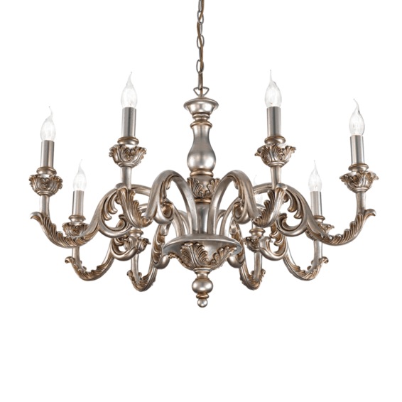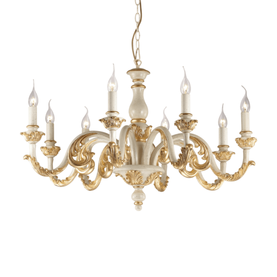 Арматура из металлической структуры. Корпус света из смолы повторяющей вырезку по дереву. Украшен под античный вид ручной работы, золотистой фольги или серебристой или белой краски.
